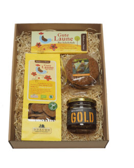Zutaten Gute Laune – Kekse: DINKELVOLLKORNMEHL (52%)*, Rohrohrzucker*, Sonnenblumenöl*, Sheabutter*, Muskatnuss*, Zimt*, Gewürznelke*, Backtriebmittel: Natriumhydrogencarbonat**